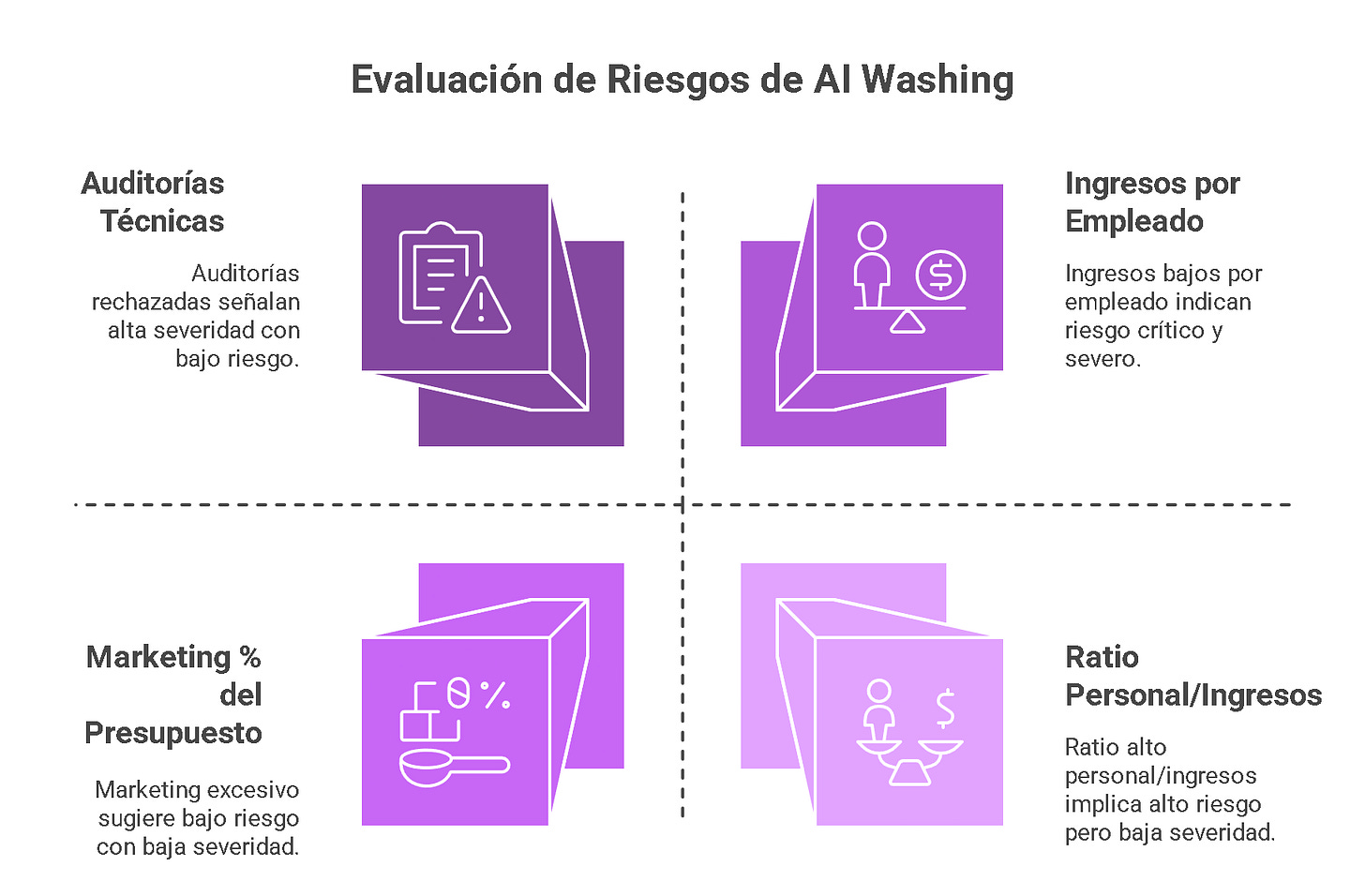 El hype de la IA incentiva el AI-washing, lo que a su vez puede conducir a modelos operativos insostenibles o fraudulentos si la tecnología subyacente no madura con la rapidez necesaria.